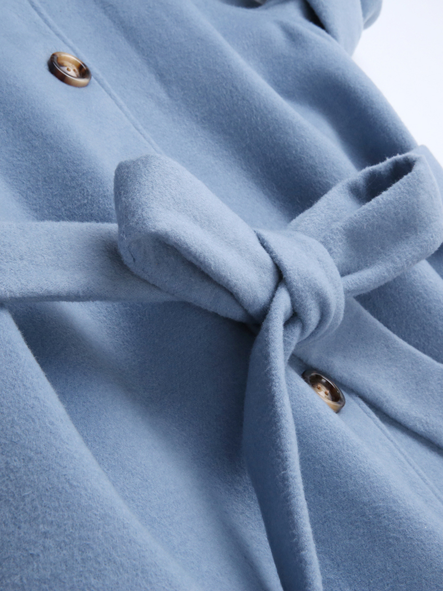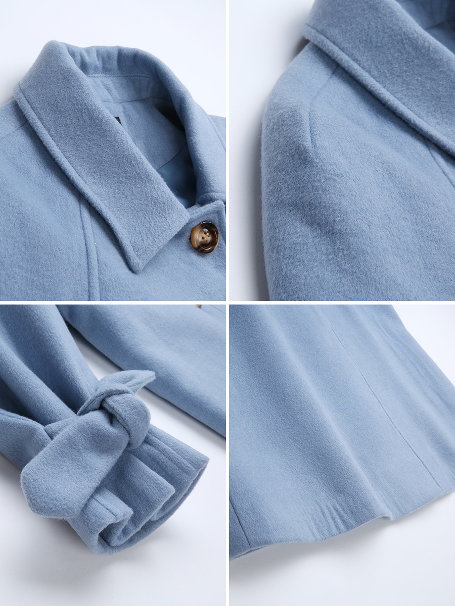 MG小象中長款過膝毛呢外套女秋冬2018新款蝴蝶結寬松休閑呢子大衣