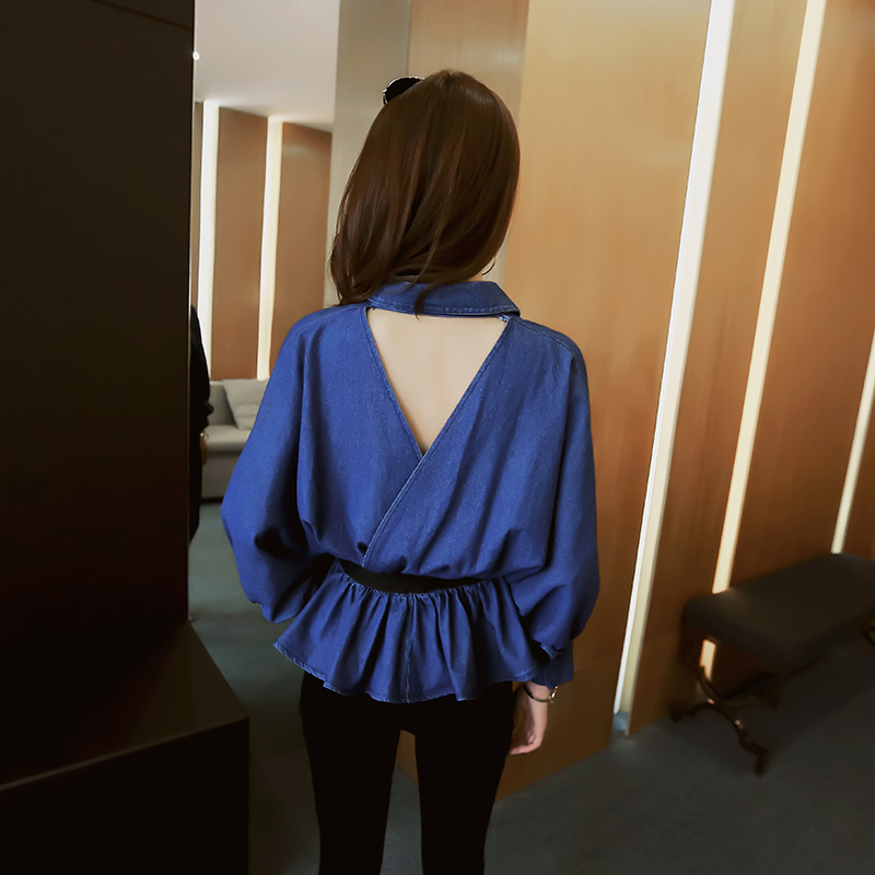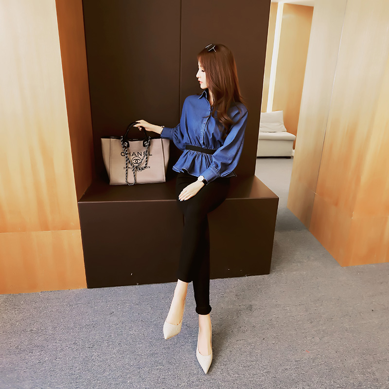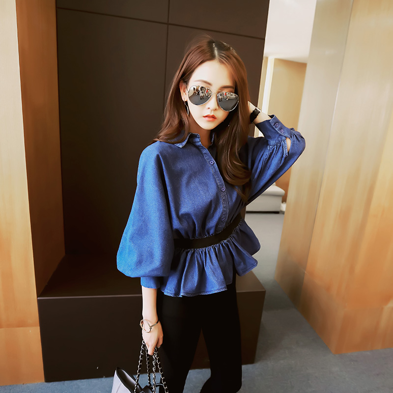 / 秋裝女裝韓版寬松收腰荷葉邊長袖燈芯絨襯衫學生百搭打底襯衣上衣