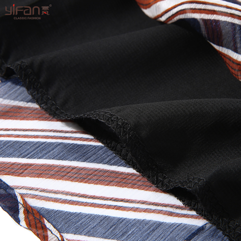 韓版春夏新款上衣夏雪紡衫女七分喇叭中袖荷葉邊印花條紋寬松