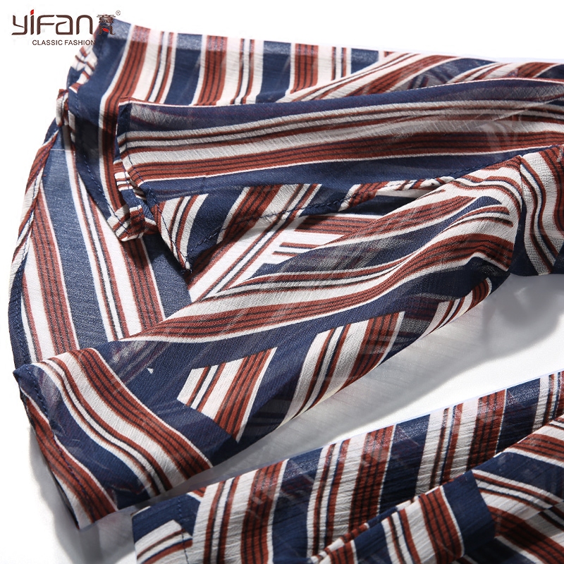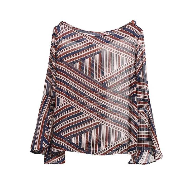 / 韓版春夏新款上衣夏雪紡衫女七分喇叭中袖荷葉邊印花條紋寬松