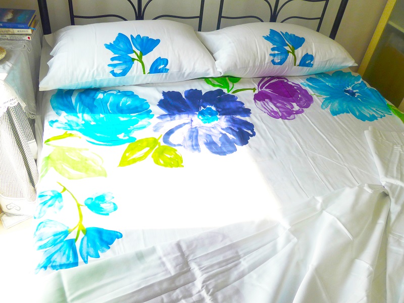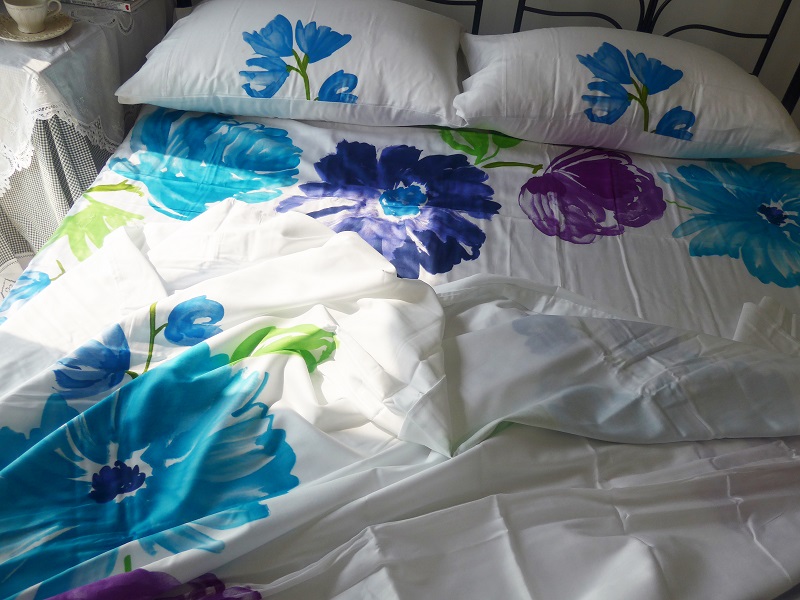 / 特價*原單工廠白色花朵田園風長絨棉高支紗簡約條紋床上四件套