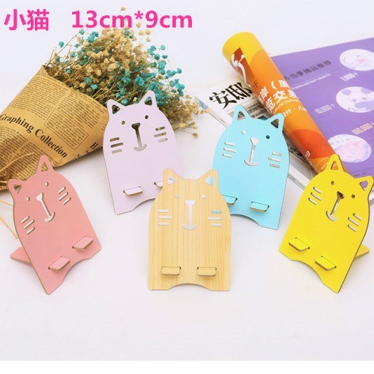 / 木質便攜新品支架托架可愛卡通床頭手機桌面折疊懶人托架子包郵