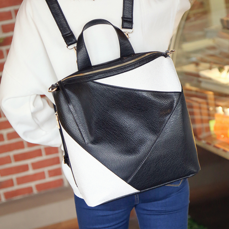 / 新款韓版學院風雙肩包女拼接撞色旅行背包休閑單肩雙肩兩用包