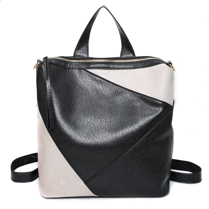 新款韓版學院風雙肩包女拼接撞色旅行背包休閑單肩雙肩兩用包