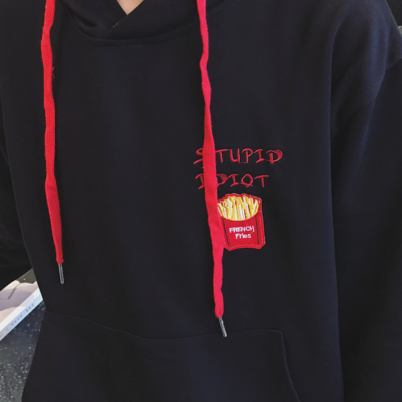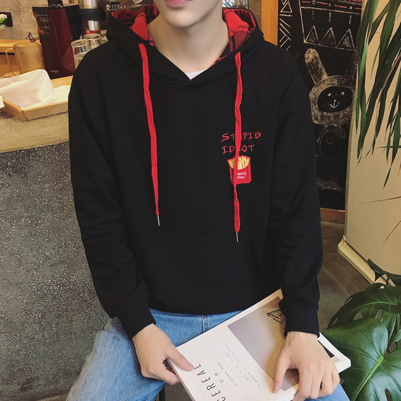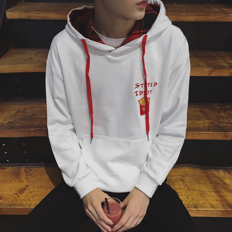 新款男裝港風字母刺繡韓版連帽男士套頭衛衣外套潮