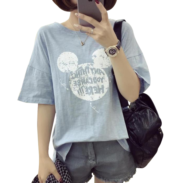 / 學生新款洗舊米奇頭寬松t恤女短袖韓版上衣竹節棉顯瘦打底衫