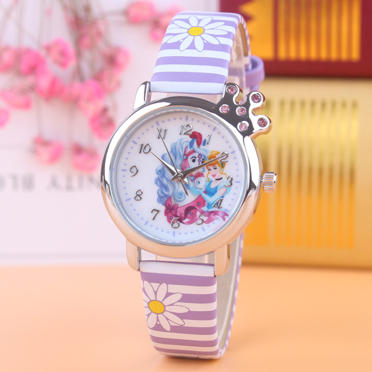 新款兒童手表女孩電子表韓國小學生可愛卡通防水表女童白雪公主表