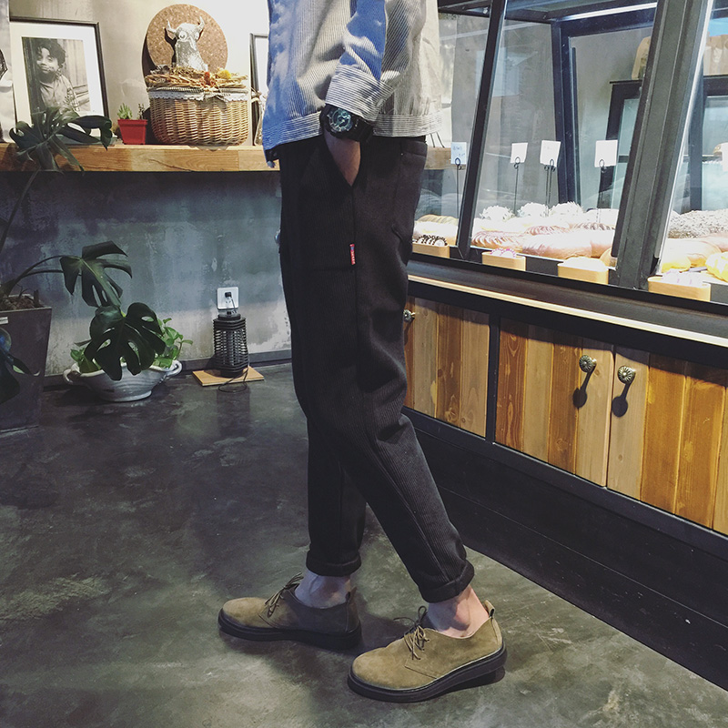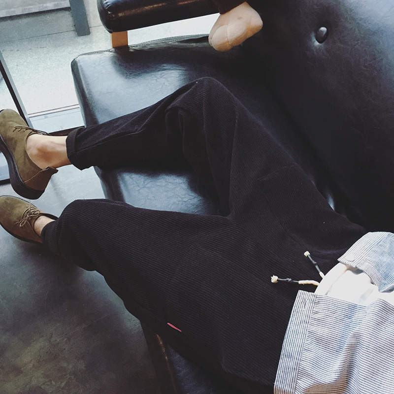 / 男裝港系松緊系繩韓版寬松小直腳男士燈芯絨休閑褲