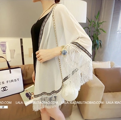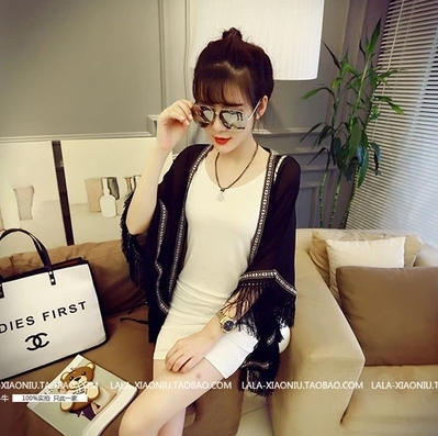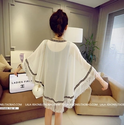 雪紡衫外套防曬衣女2017夏季新款韓版寬松披肩流蘇開衫七分袖上衣