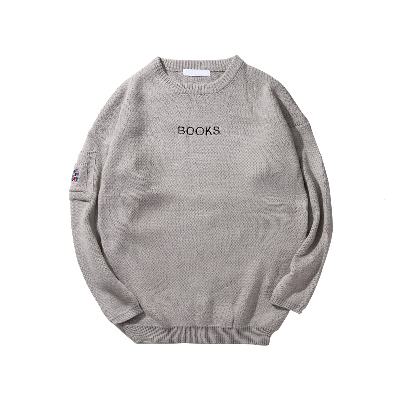 / 新款秋裝刺繡字母韓版修身圓領男士套頭針織衫毛衣