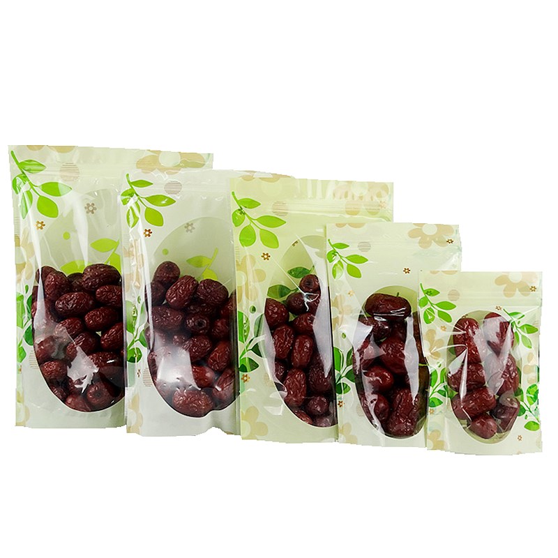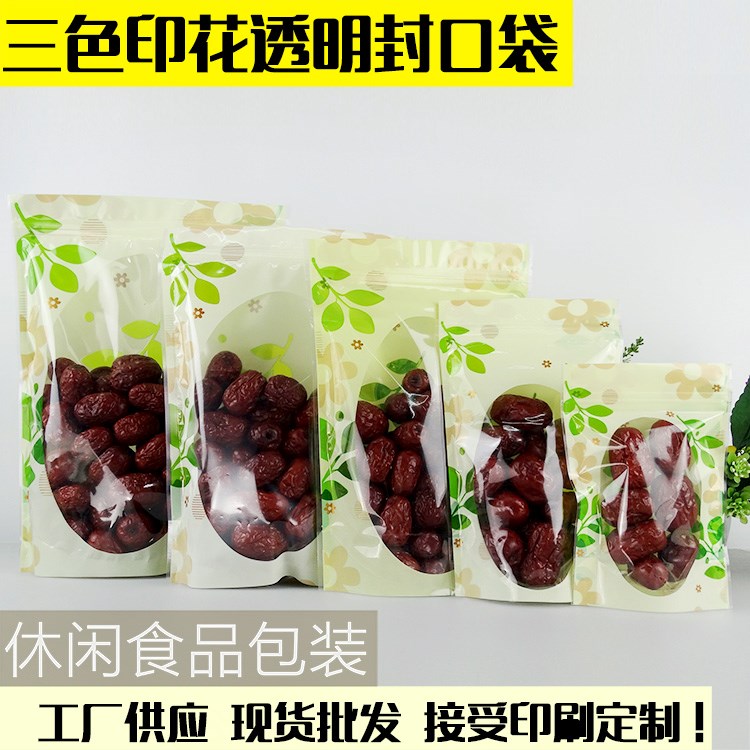 印三色花茶袋食品包裝袋糖果干果包裝袋子自封袋綠葉子開窗自立袋