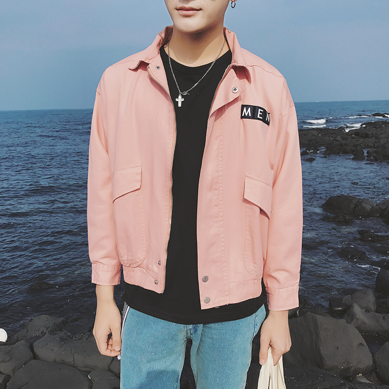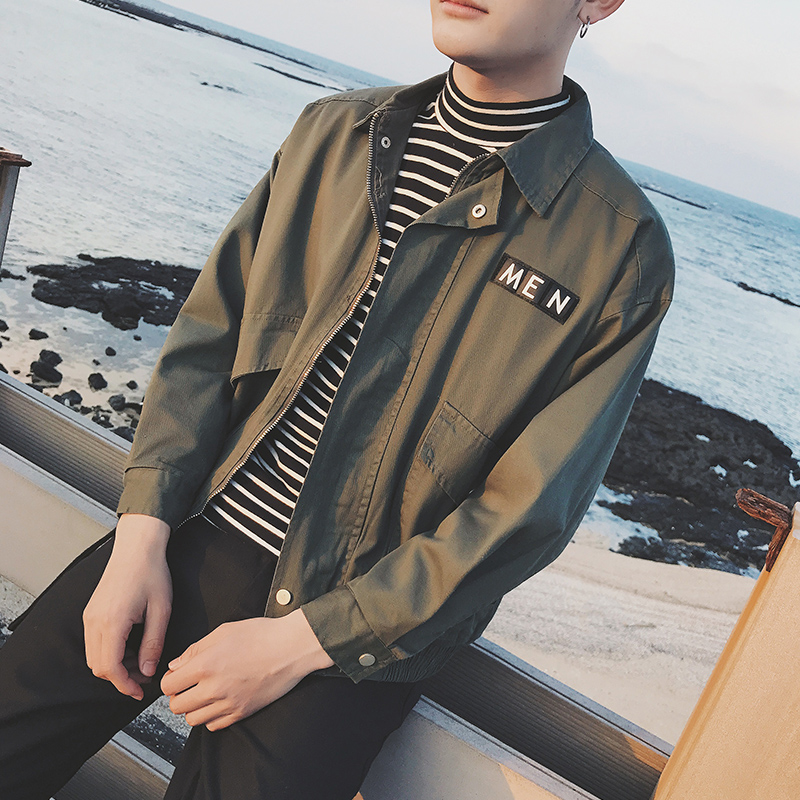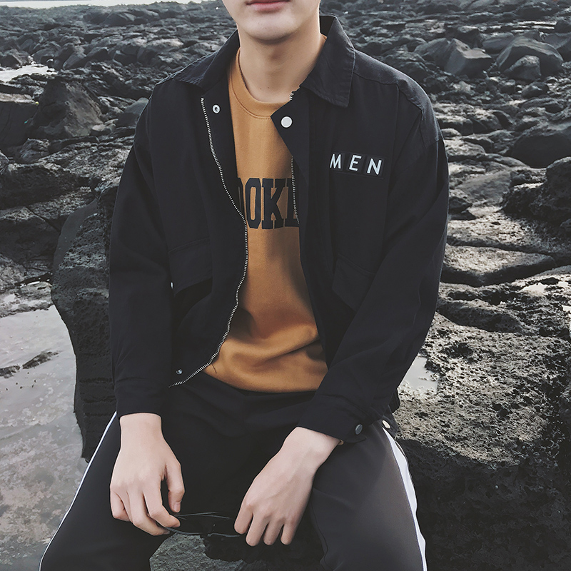 男裝17新款簡約字母韓版翻領男士短款寬松夾克外套