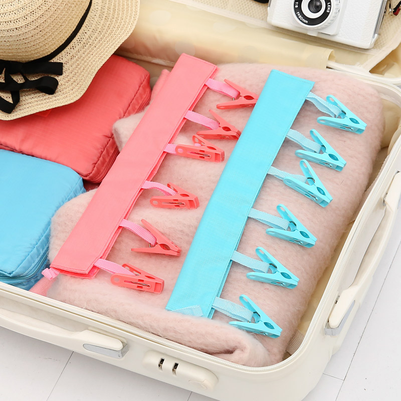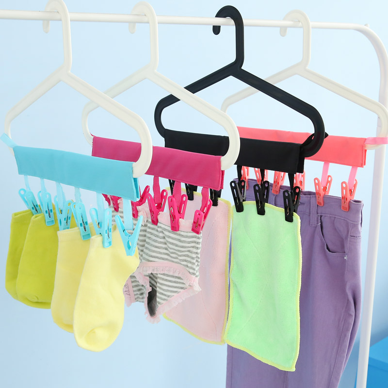 便攜式布藝衣架可折疊出差旅行衣架浴室掛架衣服夾子