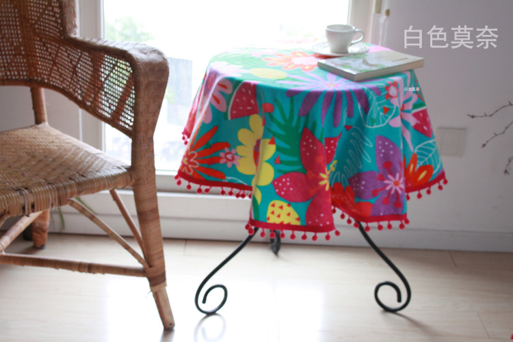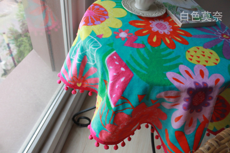 [白色莫奈]夏威夷風情撞色多功能純棉圓桌布割絨浴巾沙灘巾