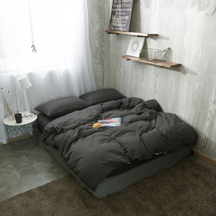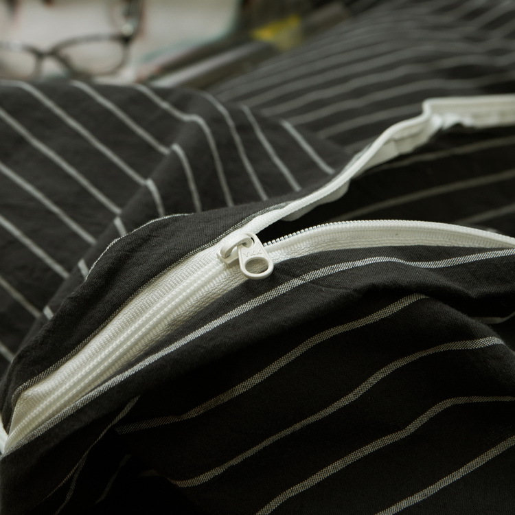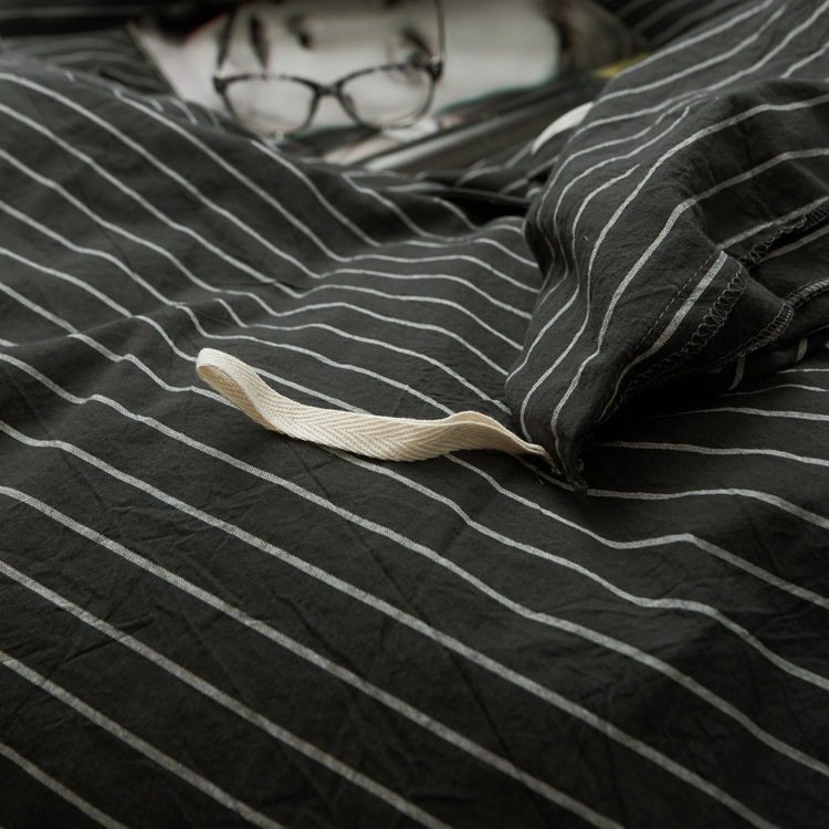 2017春季新款黑白條紋水洗棉四件套純棉全棉新疆長絨棉簡約日式良