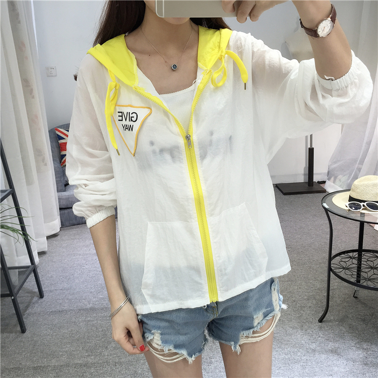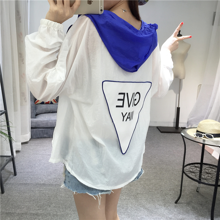夏季新款大碼女裝連帽短款薄外套字母刺繡防紫外線寬松韓版防曬衣