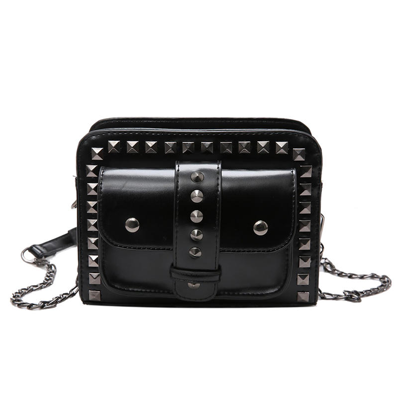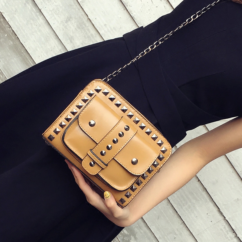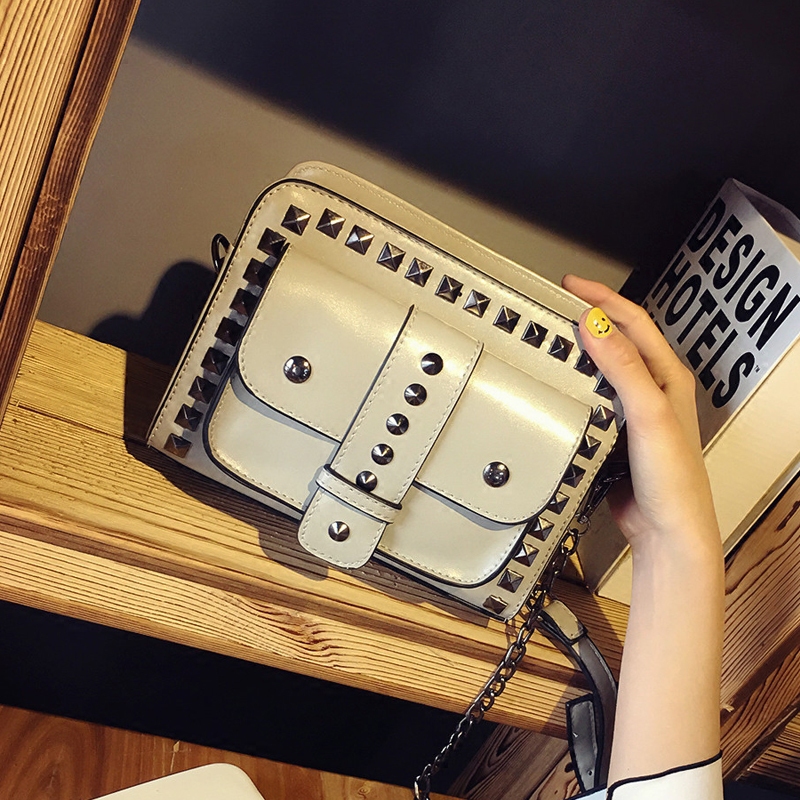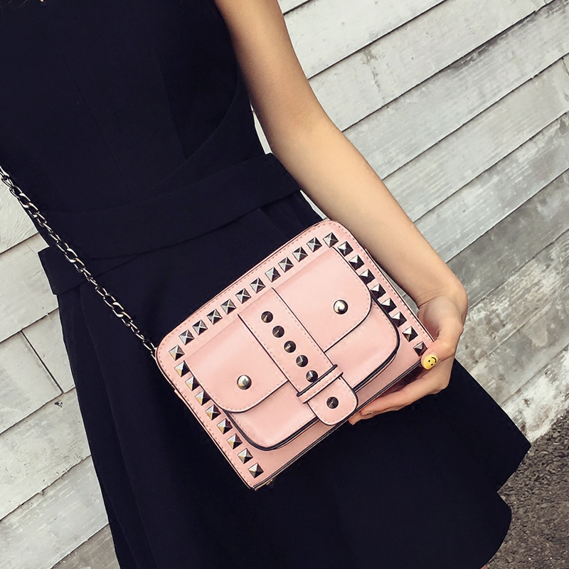 包包女新款潮復古鉚釘鏈條女包小包韓版百搭斜挎包迷你小方包