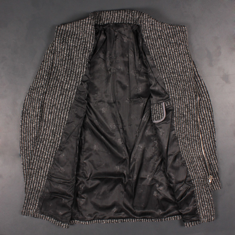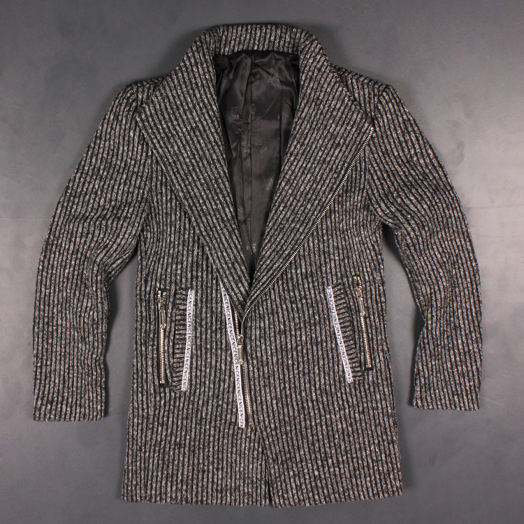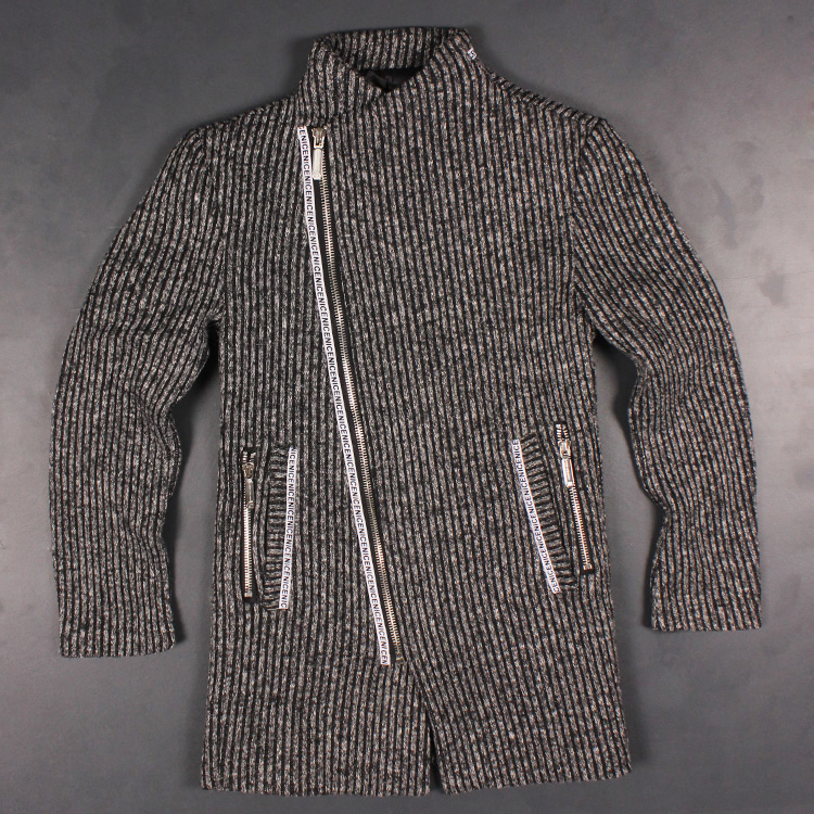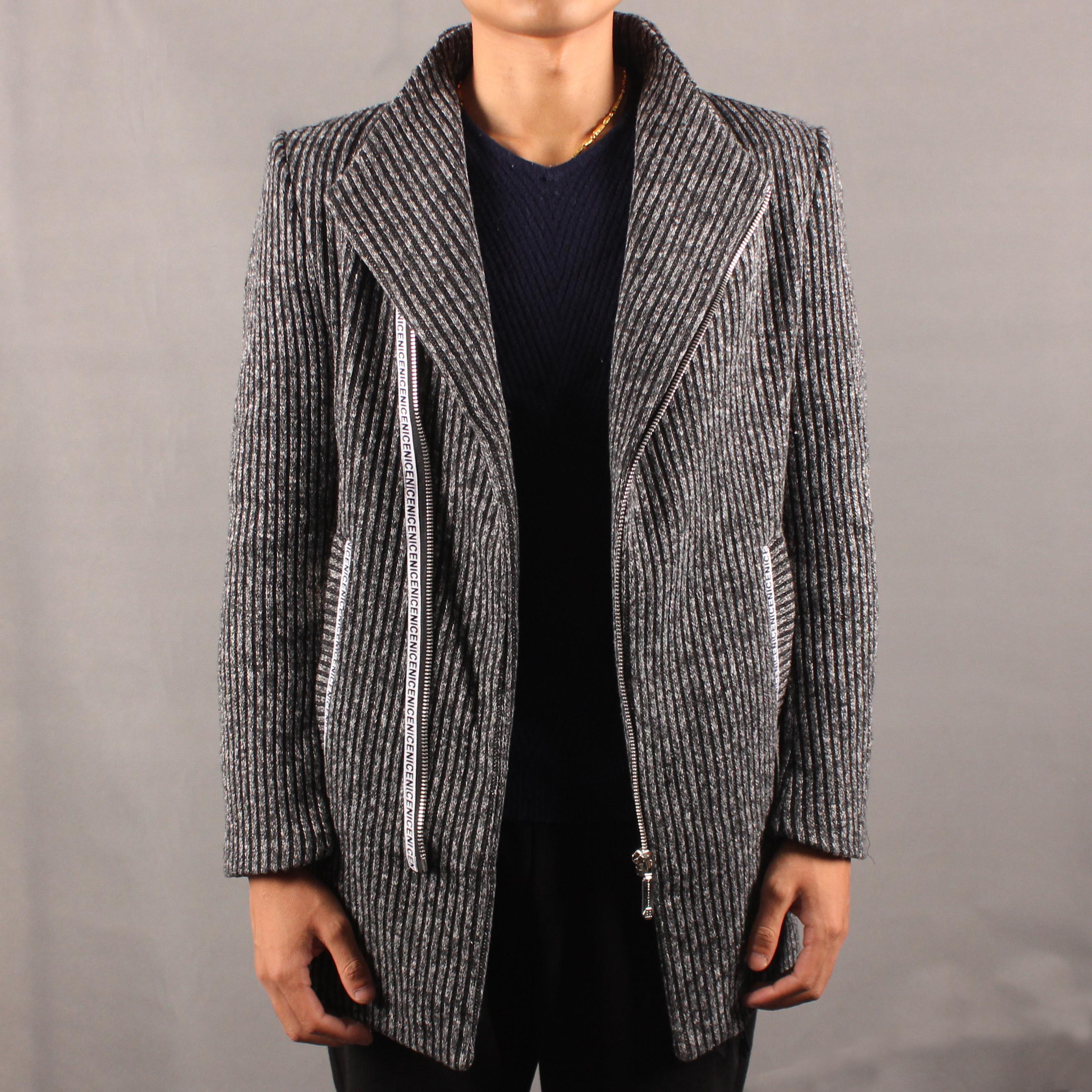 時尚帥氣針織中長款大衣 金屬拉鏈斜門襟 商務休閑冬保暖男裝外套