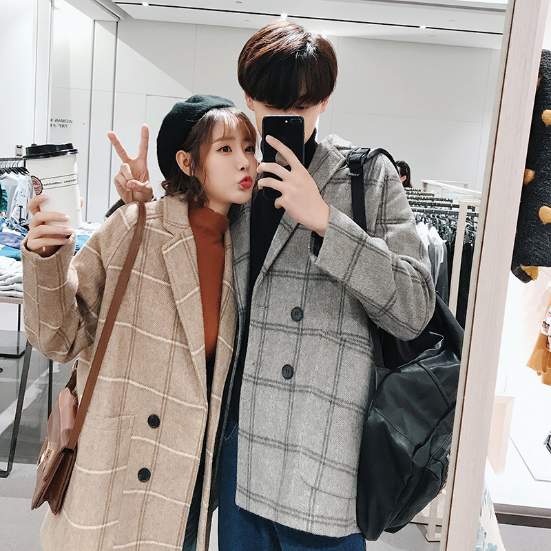 文藝男女店毛呢外套男秋季潮流休閑男裝新款韓版呢子大衣男情侶裝
