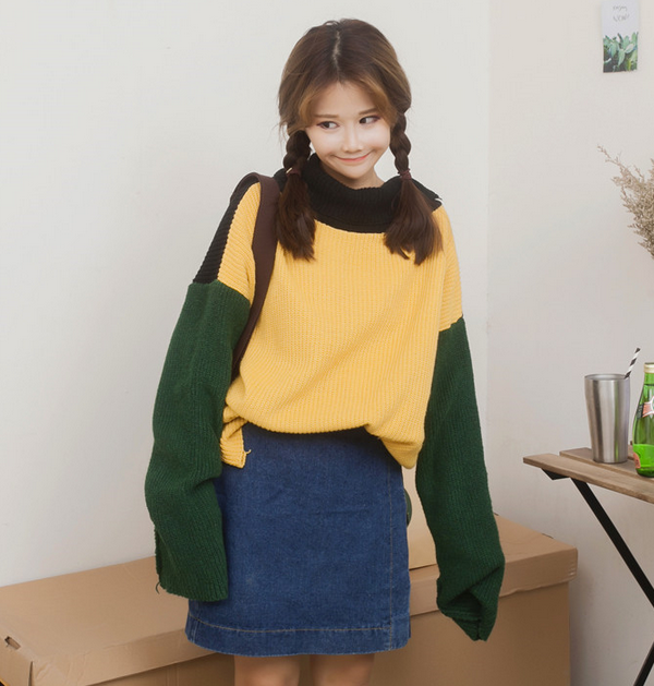 三個顏色拼成的多色毛衣,二組顏色都超級好看!