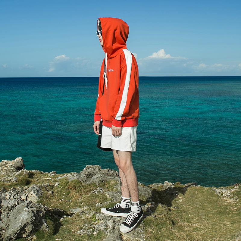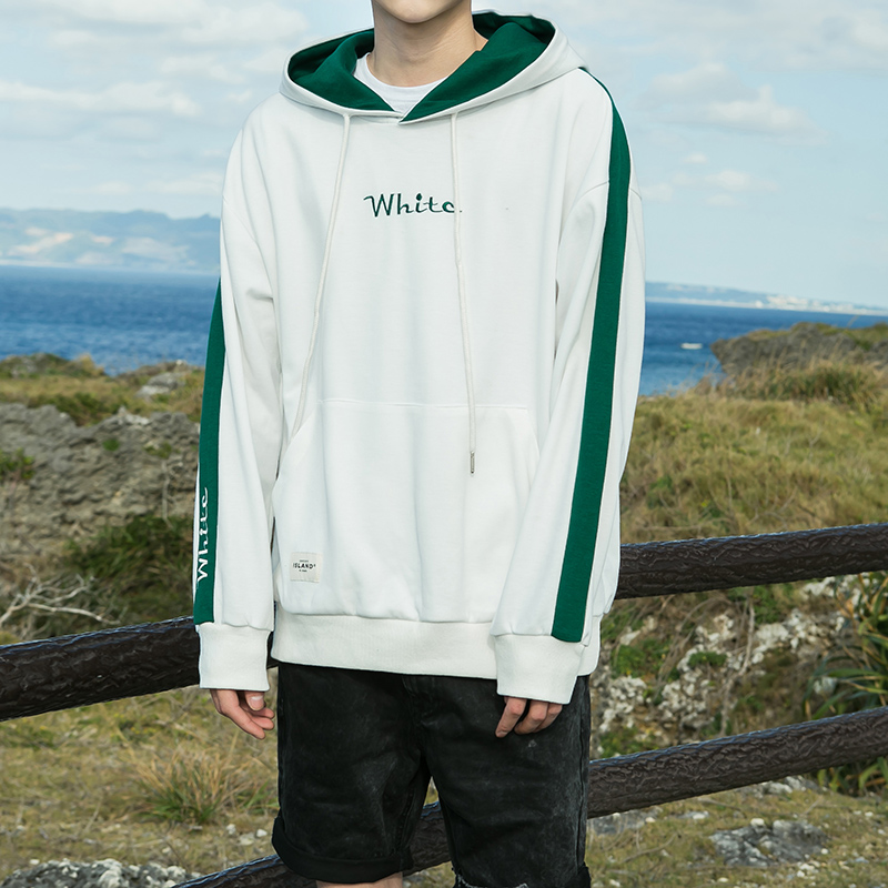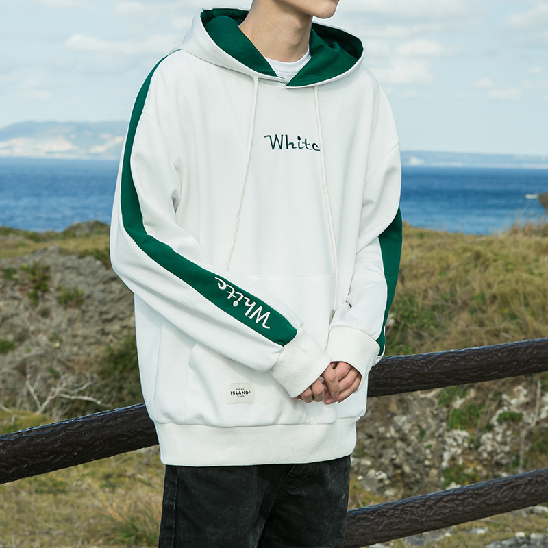 / 男裝春裝新款個性撞色字母男士刺繡連帽衛衣外套