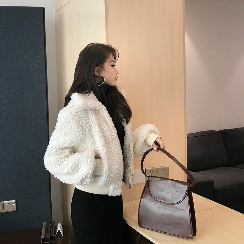 秋冬季新款韓版加厚毛毛保暖開衫長袖寬松時尚氣質女裝拉鏈外套潮