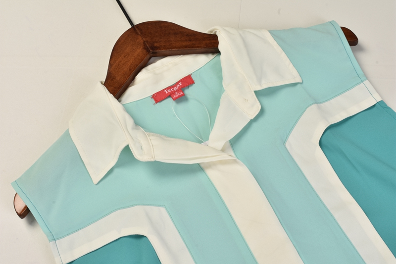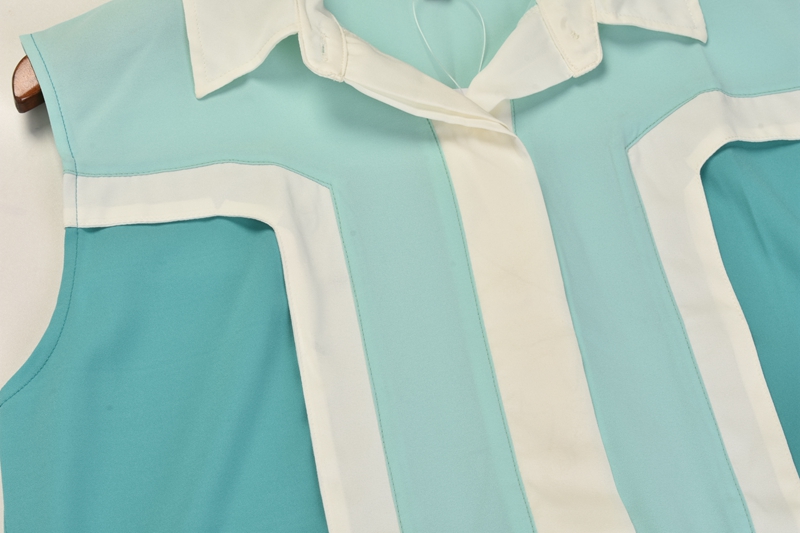 / 襯衫貨拼色春夏新款翻領無袖單排扣休閑百搭女裝上衣