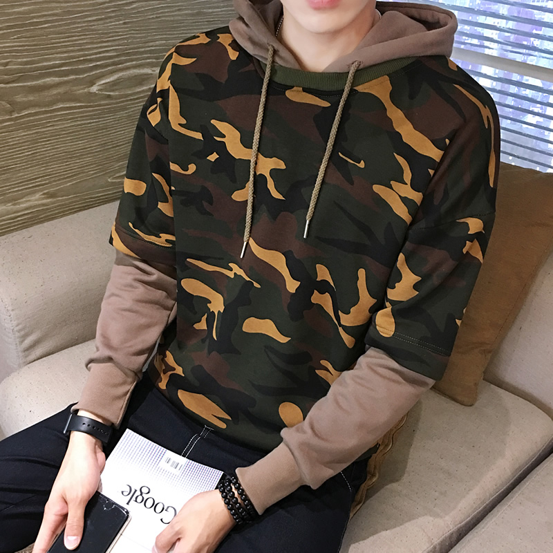 春季套頭衛衣男士連帽加絨帽衫韓版修身學生帶帽外套潮