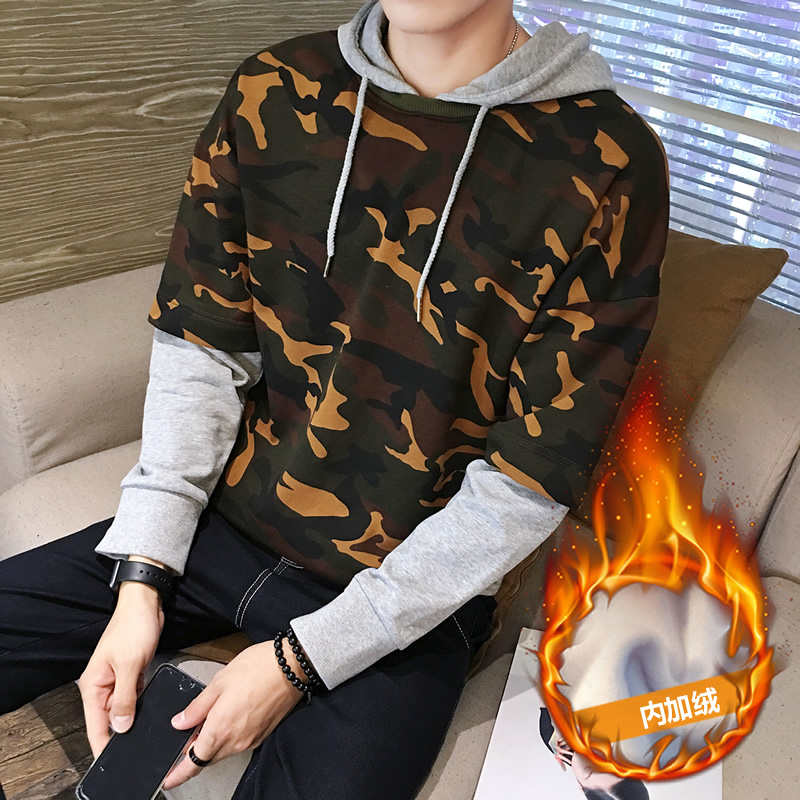 / 春季套頭衛衣男士連帽加絨帽衫韓版修身學生帶帽外套潮