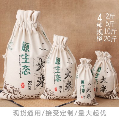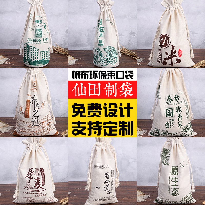 / 米袋布袋定制大米包裝袋子小米面粉袋布袋束口袋帆布五谷雜糧袋