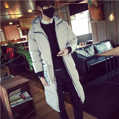 2015冬裝拼色韓版修身潮男連帽長款羽絨棉衣面包服