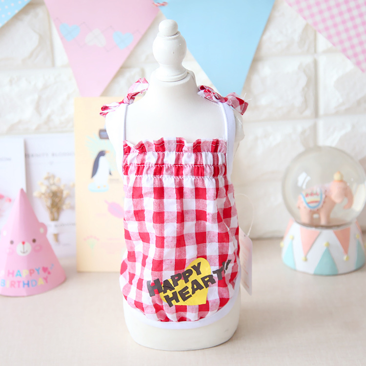 哈尼小甜心の格子連衣裙~寵物春夏裝泰迪裙子博美衣服狗背心