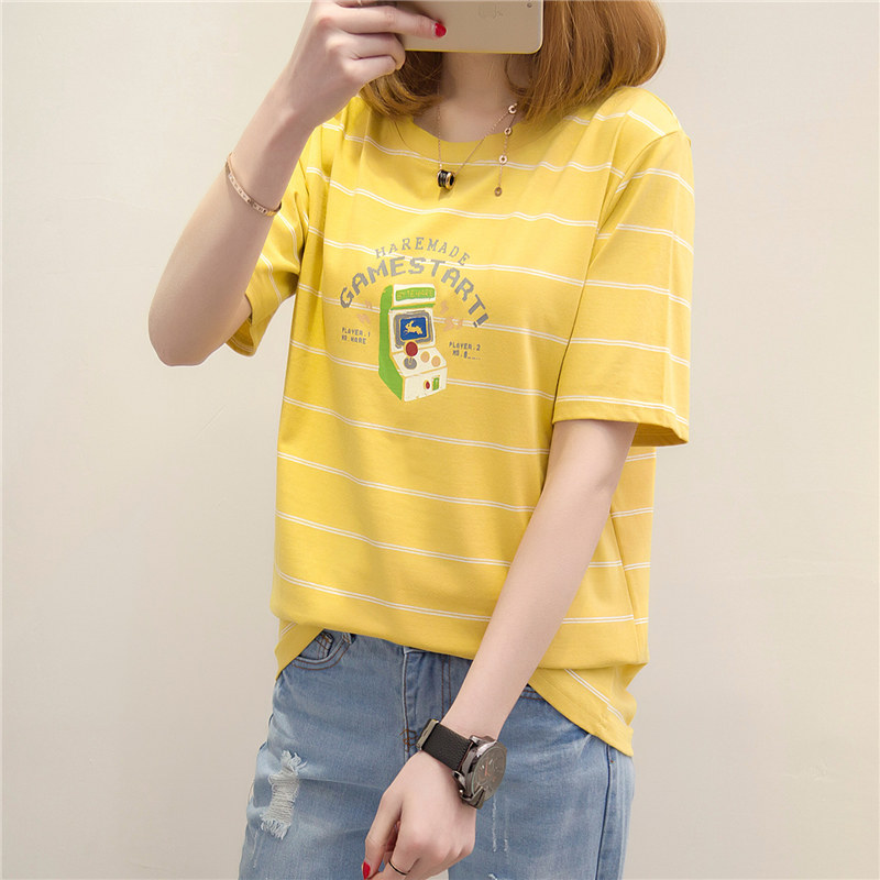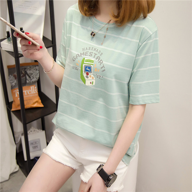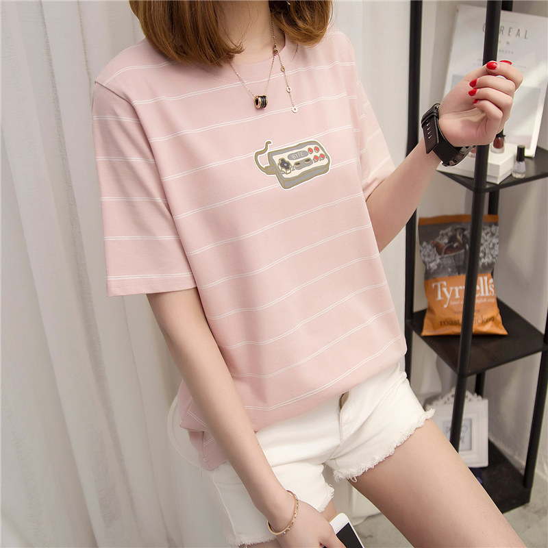 / 春裝新款女裝打底衫條紋短袖t恤女寬松上衣韓版學生顯瘦百搭