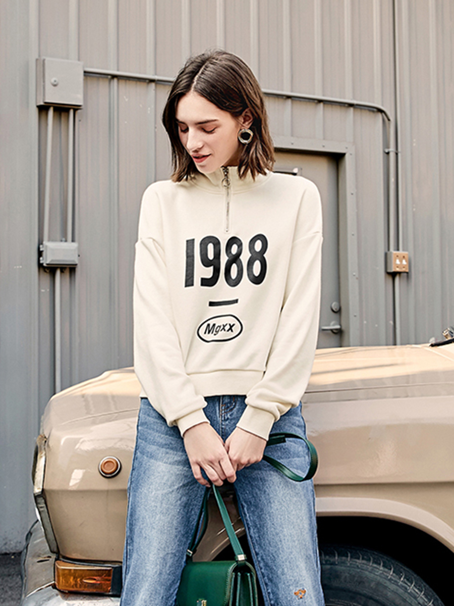 MG小象立領套頭衛衣女秋2018新款韓版長袖寬松學生字母印花上衣