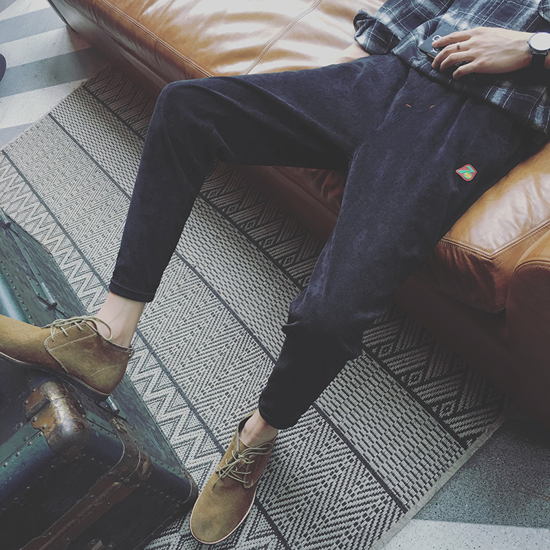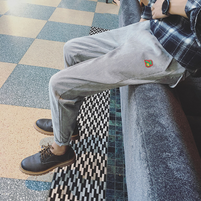 / 新款冬裝韓版清新貼皮繡男士修身小腳休閑褲錐形褲