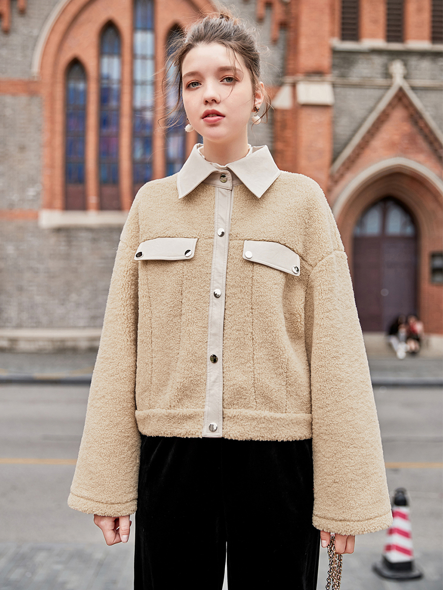 MG小象短款休閑毛呢外套女學生寬松bf風上衣冬季新款2018流行大衣