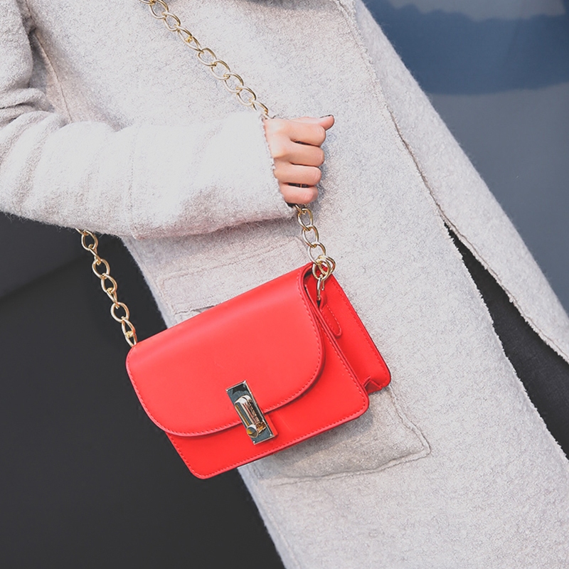 / 新款日韓版復古豆腐包迷你鏈條鎖扣小方包單肩斜挎包女小包潮