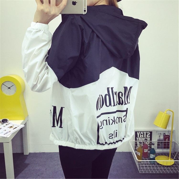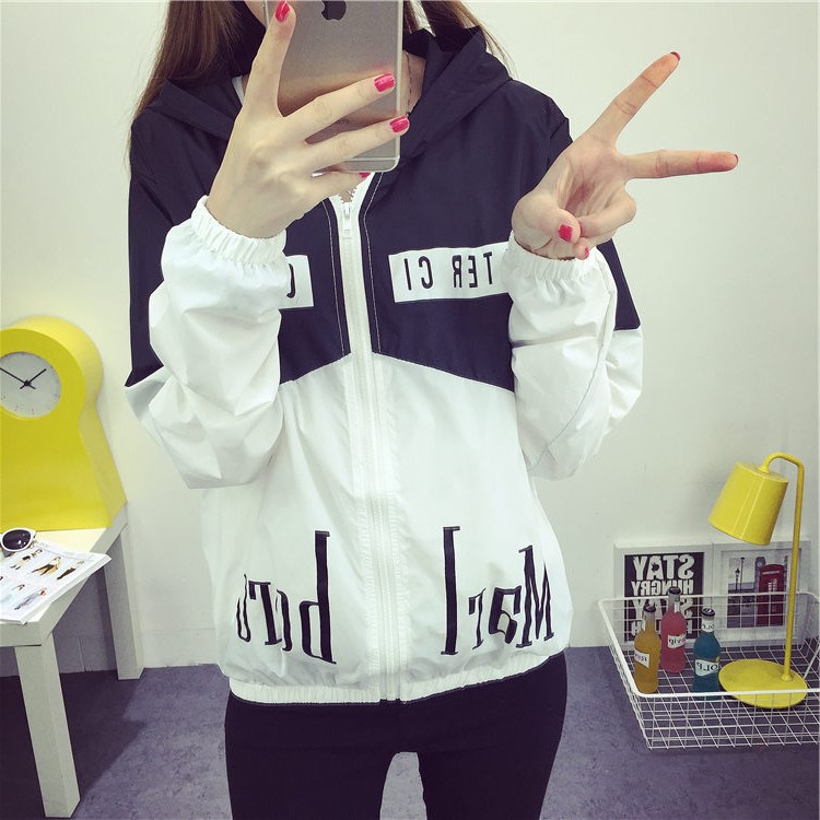 2017春秋薄款少女開衫夏天連帽防曬衣大碼簡約風衣學生短款外套女