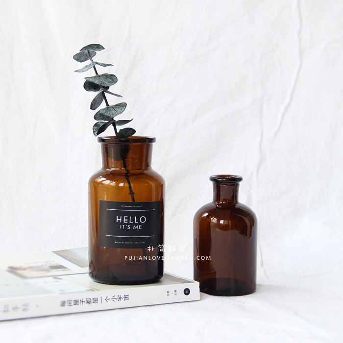 / 樸簡 北歐ins風小棕瓶 簡約透明玻璃花器 家居裝飾水培 干花花瓶
