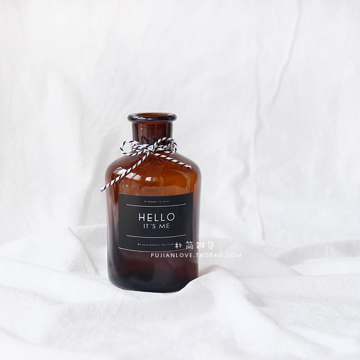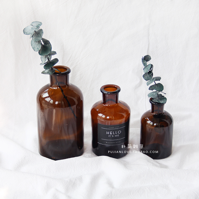 樸簡 北歐ins風小棕瓶 簡約透明玻璃花器 家居裝飾水培 干花花瓶
