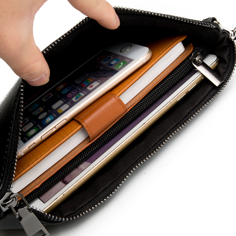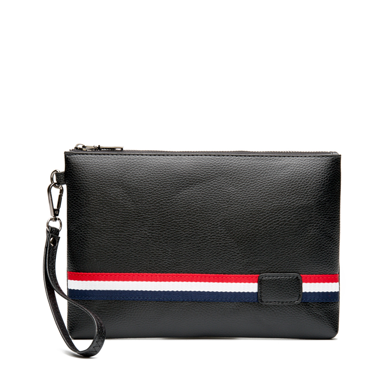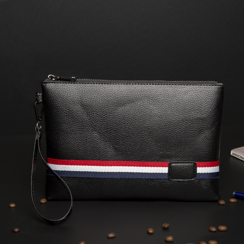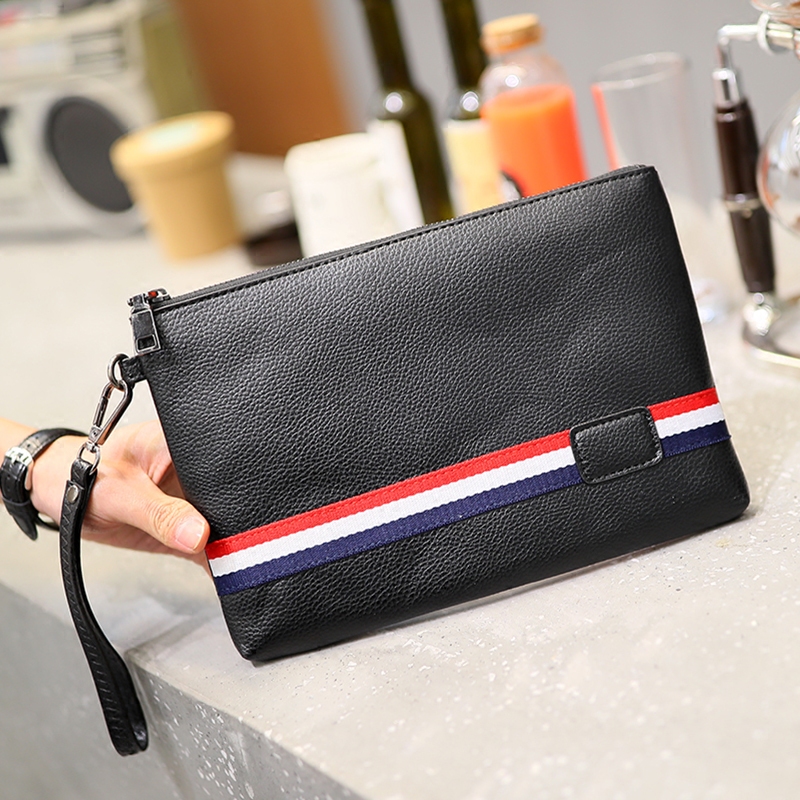 潮流時尚街頭皮質手拿包休閑條紋撞色手腕包便攜帶手機ipad包
