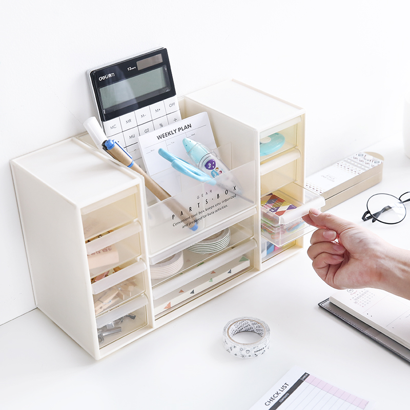 日式桌面收納盒抽屜式化妝品收納柜辦公多層塑料整理