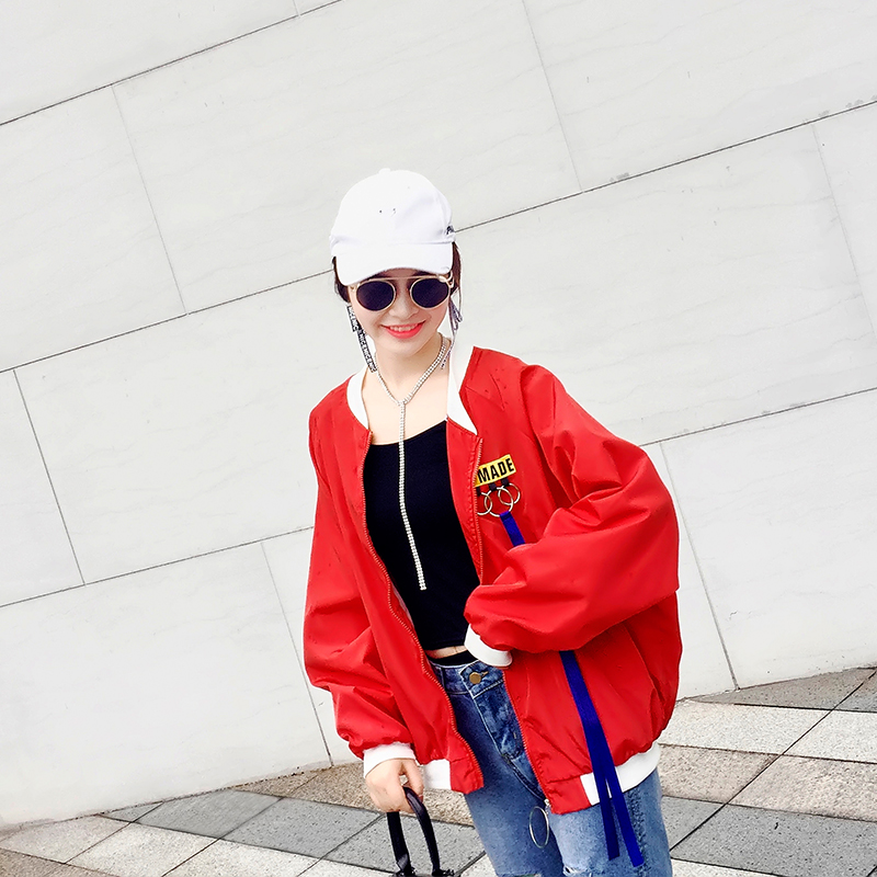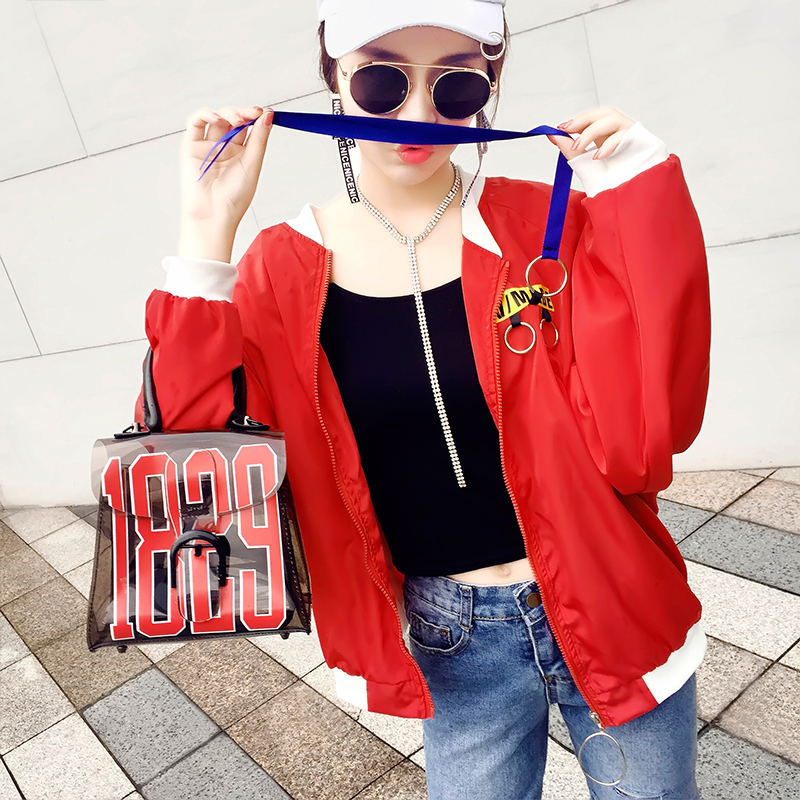 / 秋裝新款韓版學院風學生BF寬松印花字母原宿立領棒球服外套女夾克