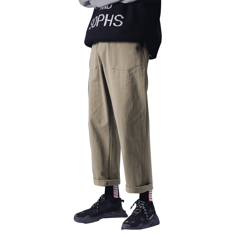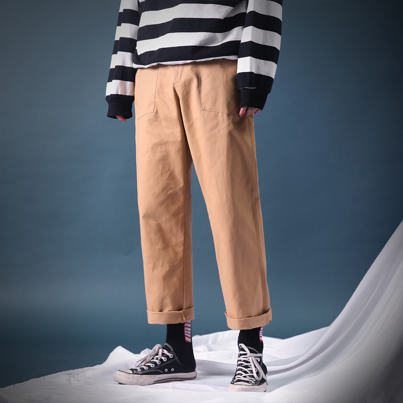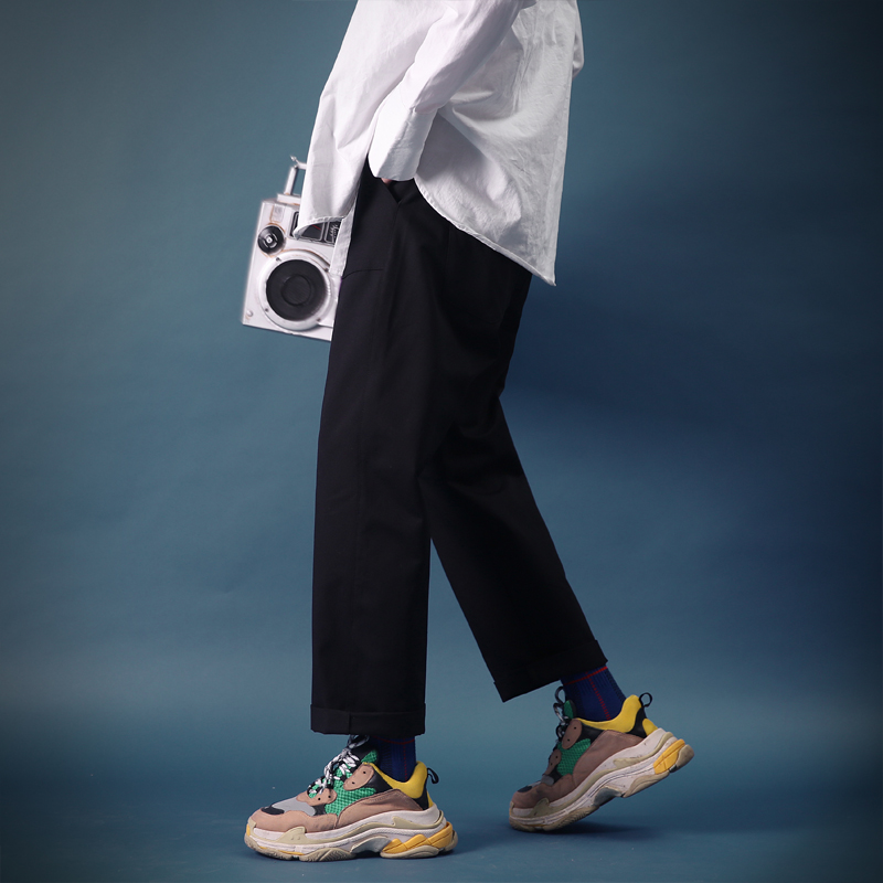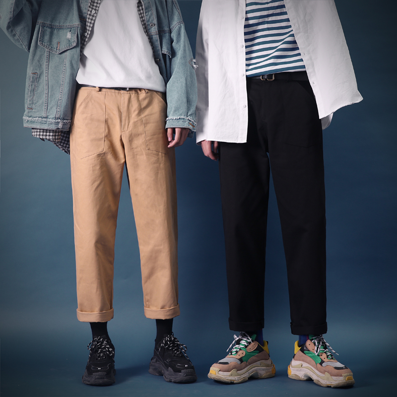 文藝男女店韓版潮流原宿秋季男士褲子寬松工裝褲冬季休閑褲九分褲