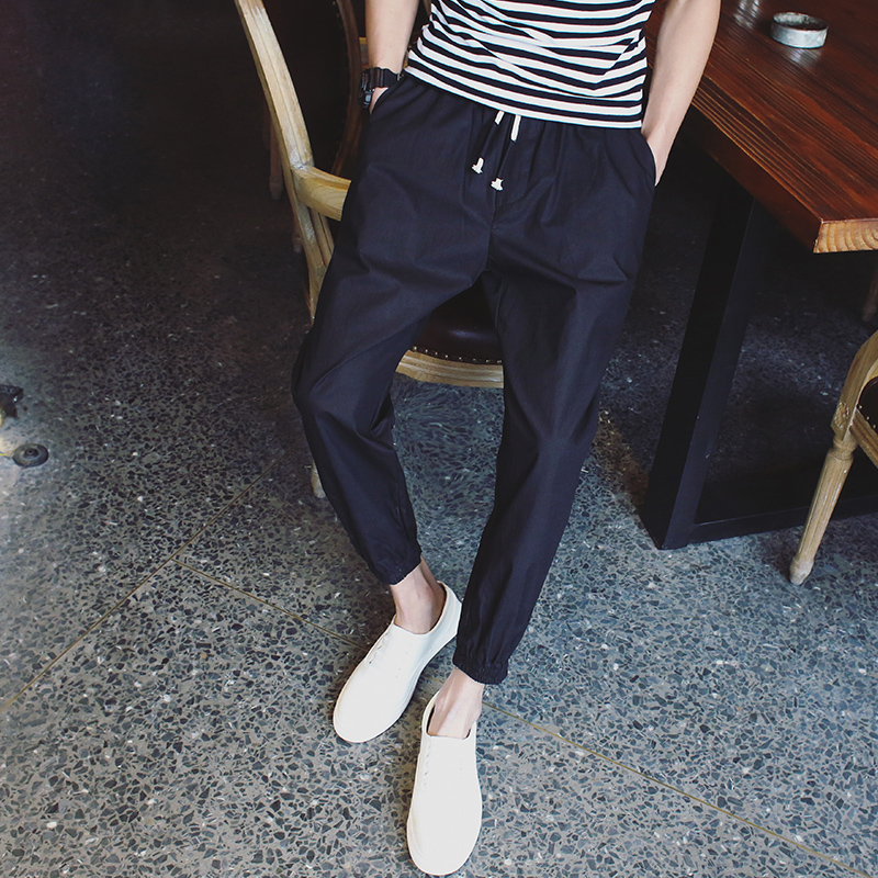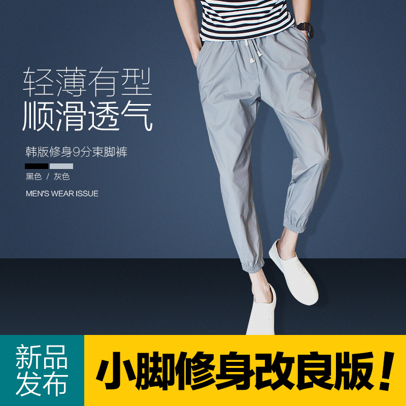 / 原創韓版透氣修身男士小直腳九分褲束腳運動褲