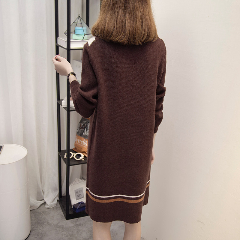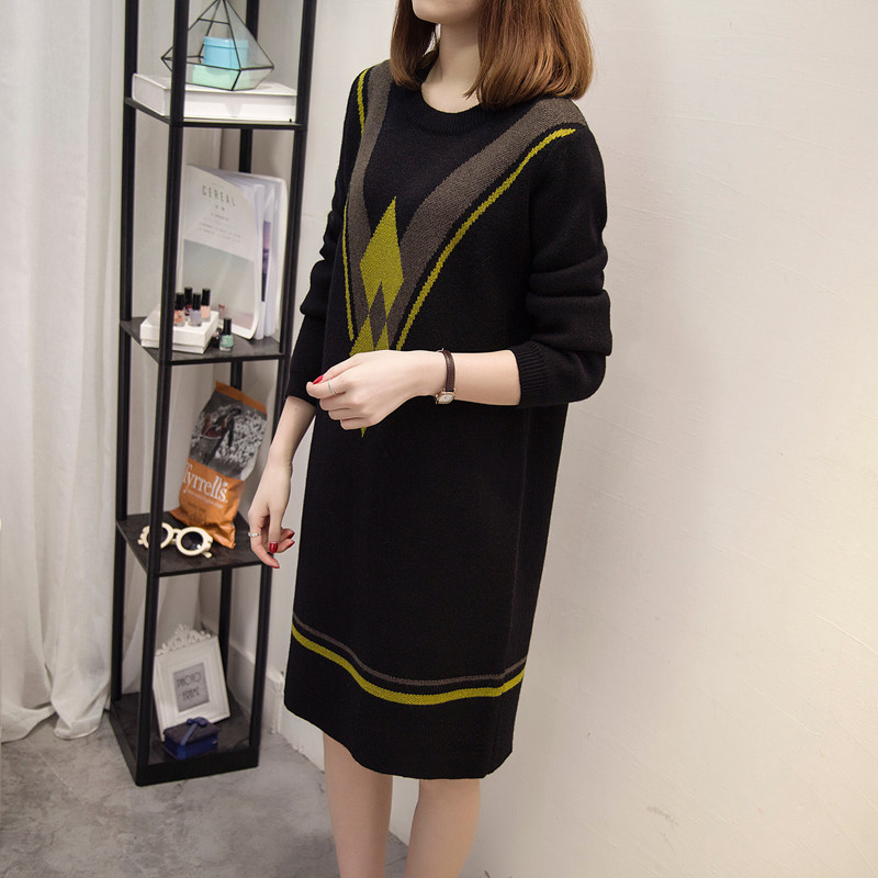 / 秋冬季新款潮打底衫女毛衣裙外套新款潮圓領套頭復古毛線衣女