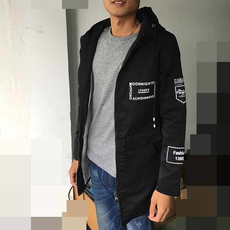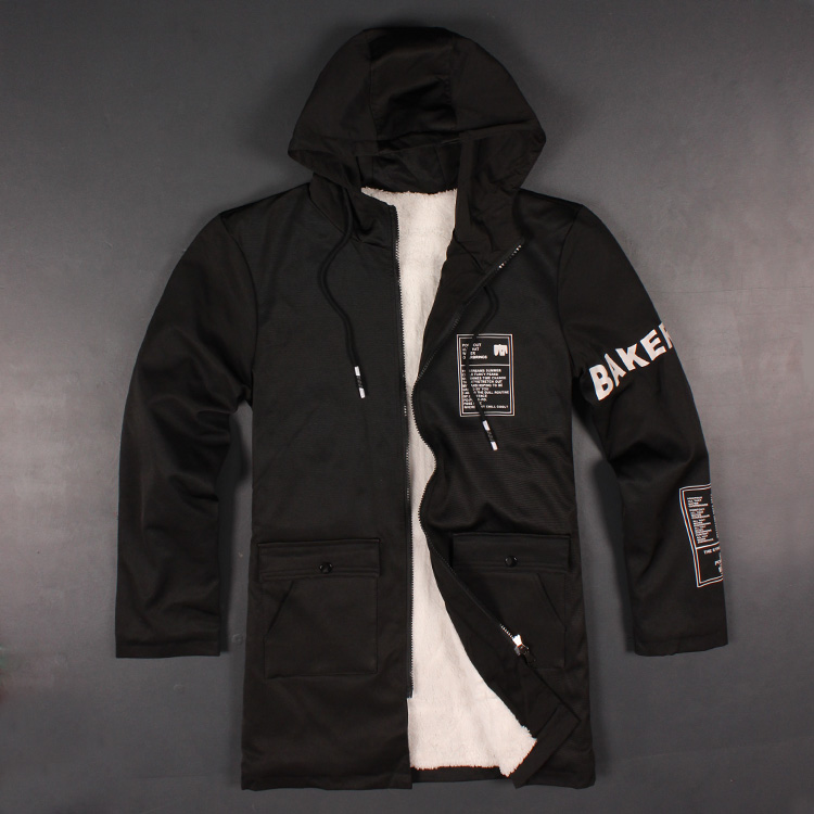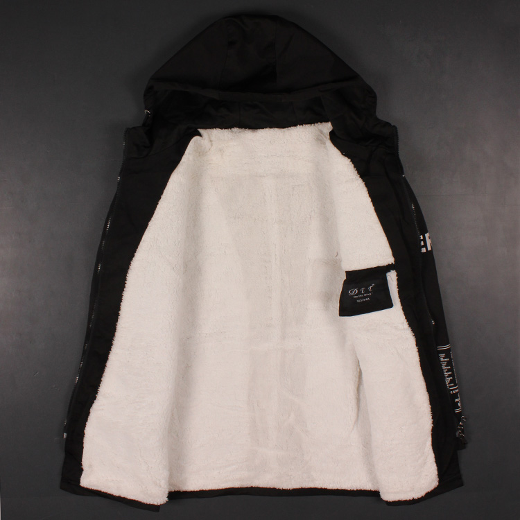 保暖羊羔絨中長款棉衣 時尚字母膠印圖案 秋冬男帥氣連帽外套開衫