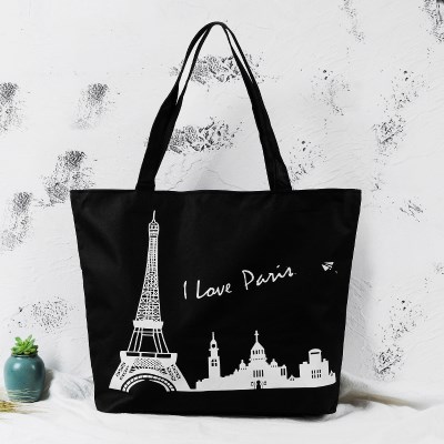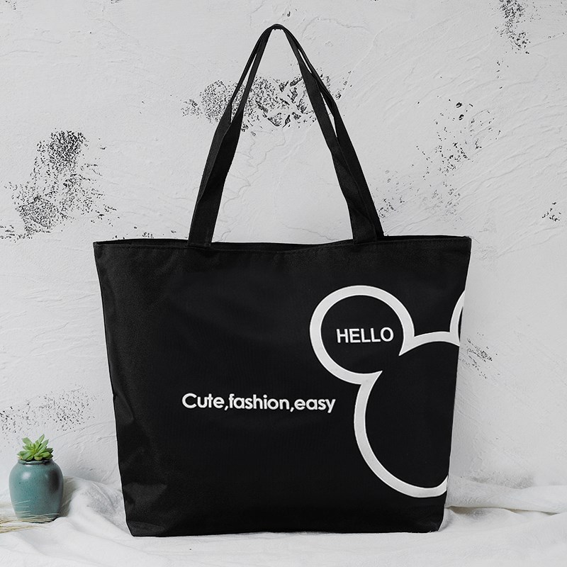 / 帶拉鏈時尚手提帆布包女單肩帆布袋子環保袋購物袋收納袋學生書包