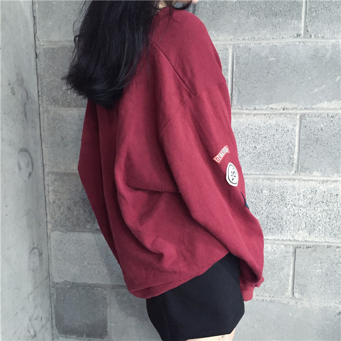 / 韓國復古chic風秋冬寬松v領貼標套頭大碼長袖衛衣上衣女學生