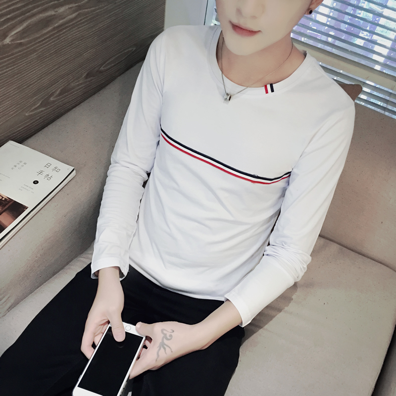 / 青年春季男士長袖t恤圓領修身大碼印花打底衫上衣服男